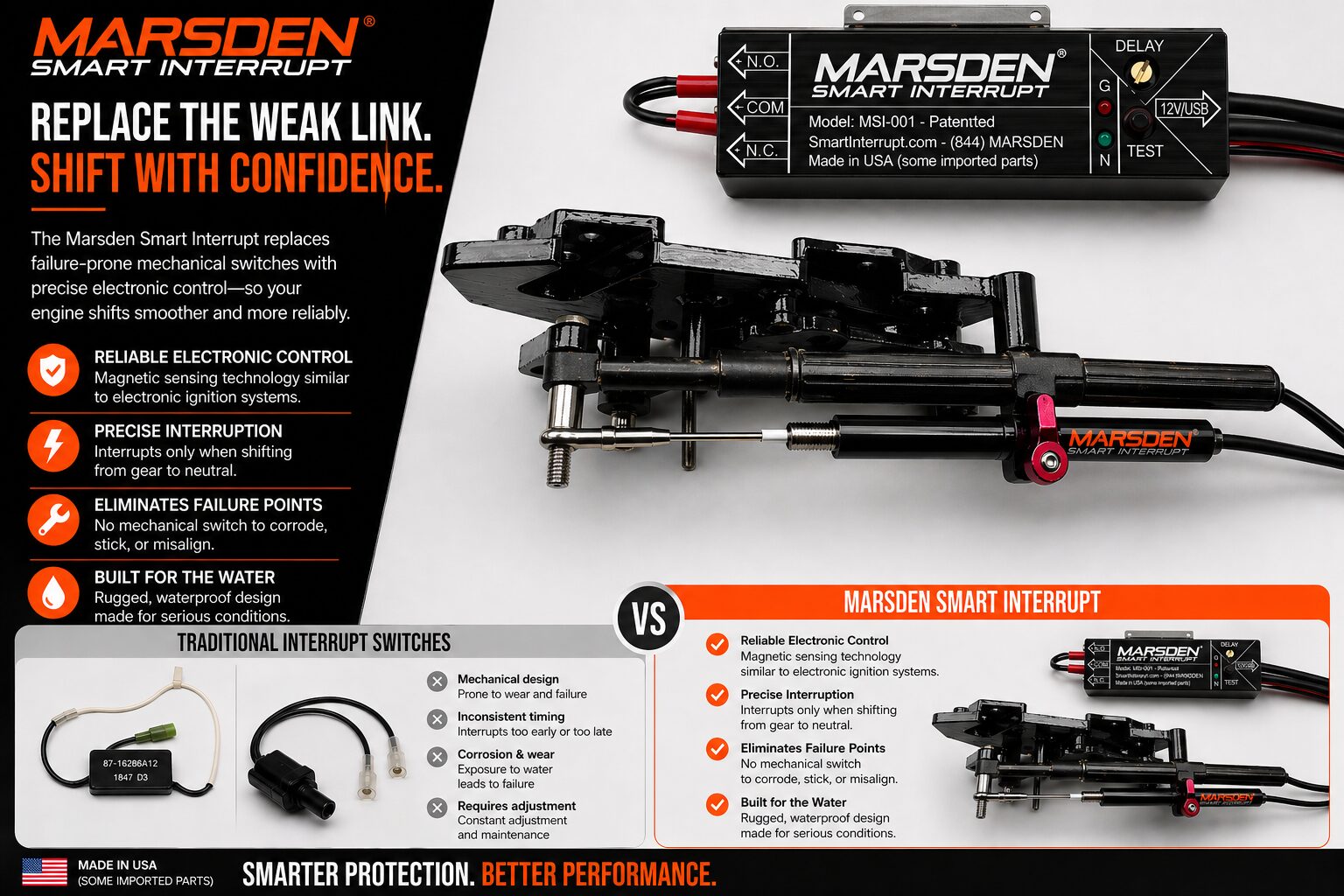 The Smart Interrupt is an advanced, patented electronic alternative to traditional mechanical shift interrupt switches. It momentarily interrupts the engine when transitioning from gear to neutral, ensuring smoother transitions and reducing wear on critical components.